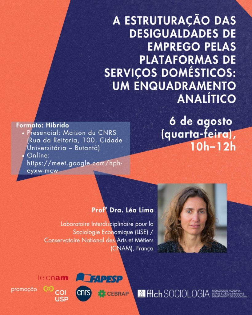 Événement organisé par Nadya Araujo (département de sociologie de l’Université de São Paulo et Centre d’Observation des Institutions brésiliennes – COI); le Laboratoire Interdisciplinaire pour la Sociologie Economique (LISE) du Conservatoire National des Arts et Métiers (CNAM) et l’IRL 2034 Mondes en transition (CNRS-USP). En portugais.